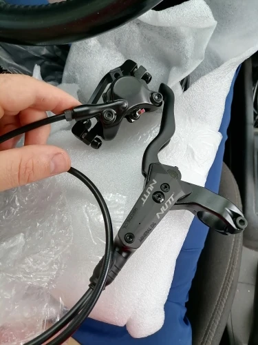 Отлично встали на Kugoo G-booster (заказывал на перед с гидролинией 1400 с учётом установленного удлинителя руля). За свои деньги-абсолютный топ. В отличие от другой дешёвой гидравлики (Шимано МТ200, зум 475) гидролиния выходит не параллельно площадке калипера, а под наклоном вниз, это даёт возможность спокойно отвести гидролинию от широкой покрышки (слик CST) и не цеплять ее. Единственный минус: нет герконового датчика для управления рекуперативный тормозом, но мне хватает одного рабочего на правой ручке от другого производителя.