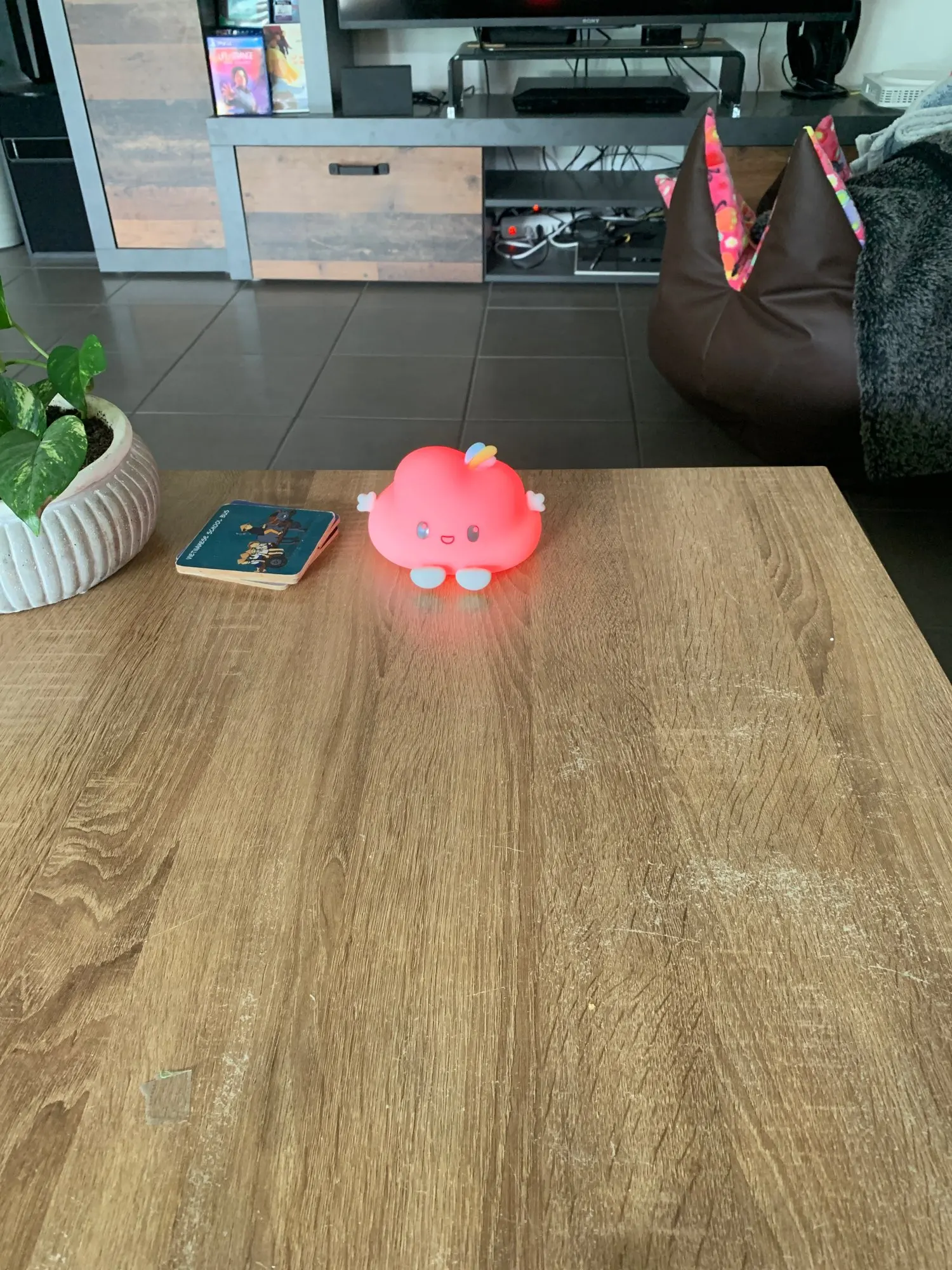 Очень классный ночник. Имеет несколько режимов, которые можно переключать с помощью пульта или удара рукой по тучке. Качество отличное. Немного помятая коробка пришла, но это не критично. Рекомендую!!!