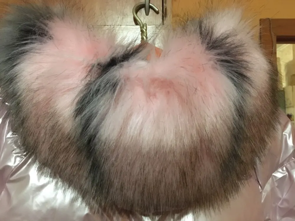 воротник на картинке на много пышнее.написано серый.но он отдает больше в темно-голубой с серым.теперь не знаю куда использовать воротник такого цвета.