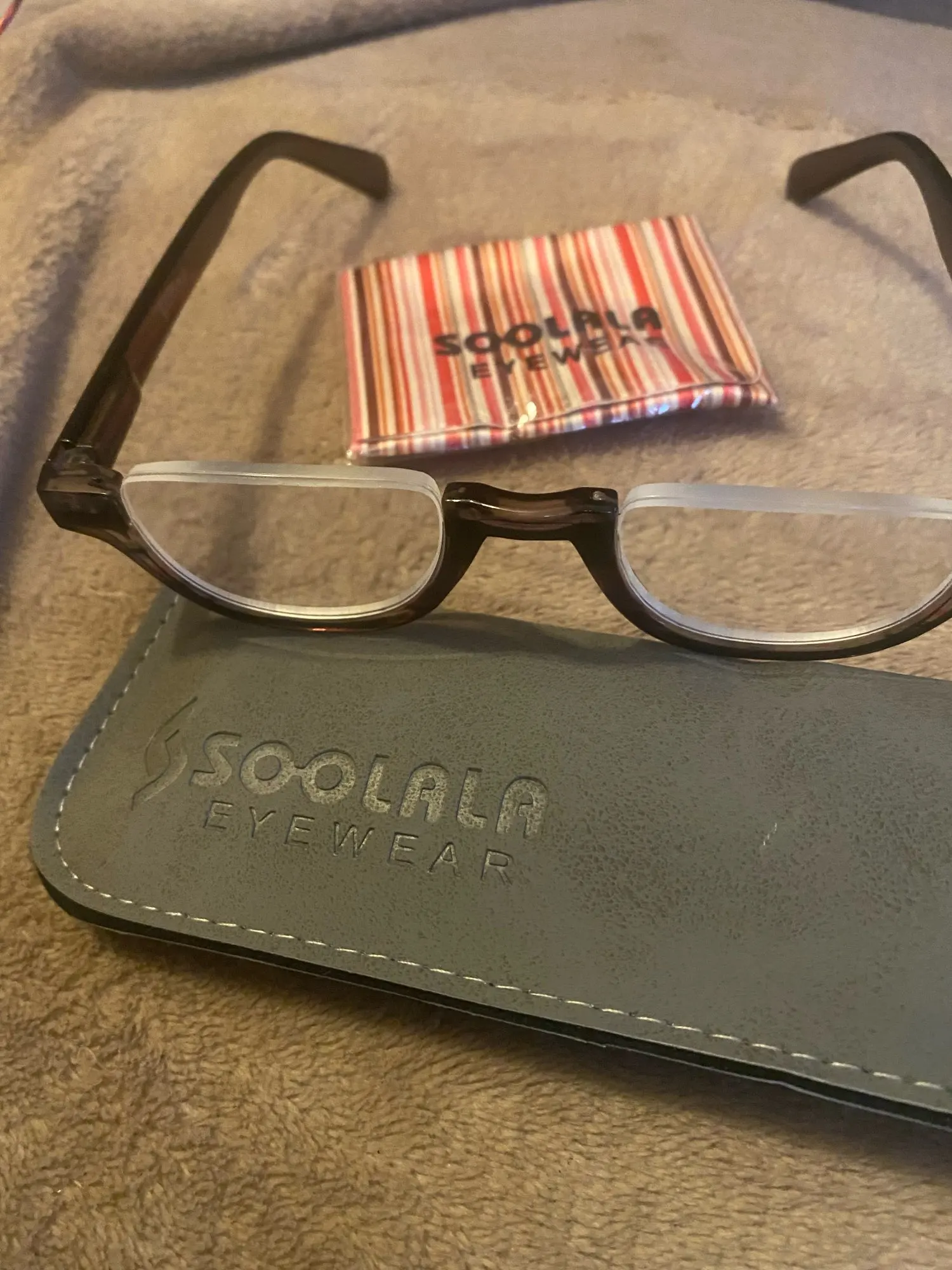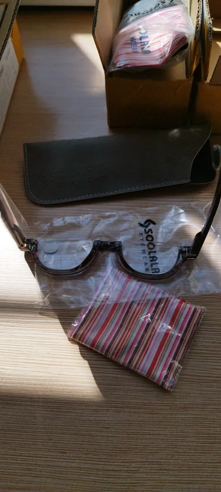 Очки с увеличением SOOLALA, половинчатая оправа, кожаный чехол