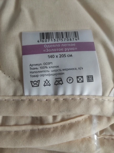 Одеяло "Золотое руно облегченное" , "ECOTEX" (Россия).