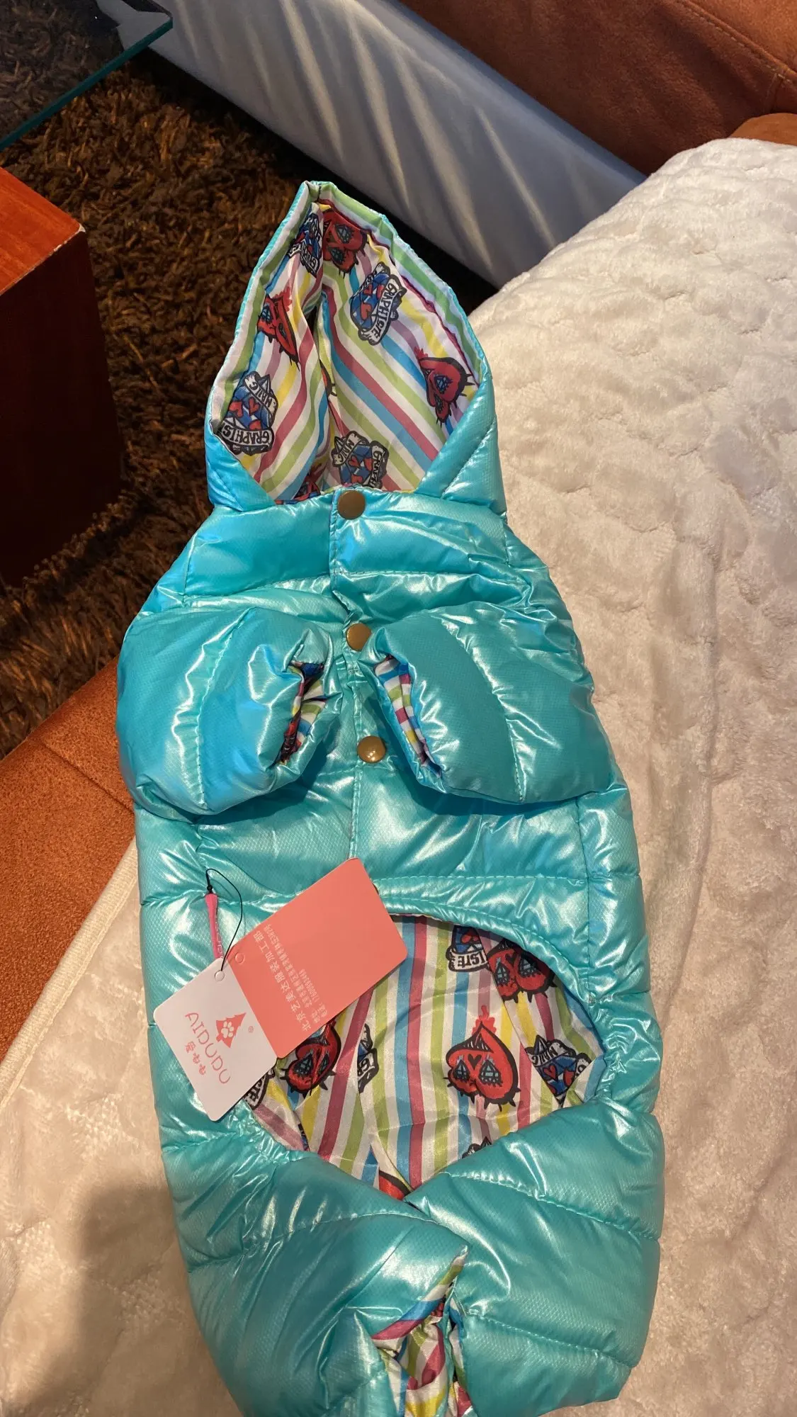 Комбинезон пришел хорошего качества. На длину спины 28 см. немного впритык, можно было взять на размер больше. Подклад синтетика. Взяли на начало весны.
