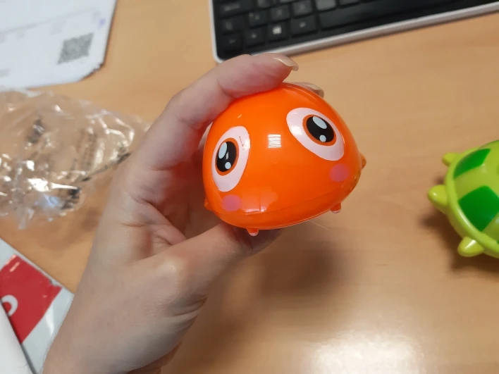 Отличная игрушка! Размер посмотрите в соотношении с моей ладонью. Красивая, все работает. Закажу ещё крабиков)