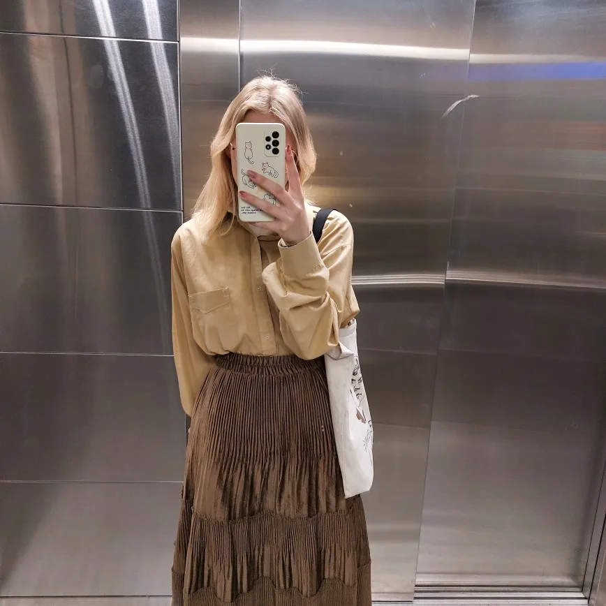 Однотонная женская винтажная длинная бархатная плиссированная юбка для женщин на осень-зиму, корейская мода, женская элегантная юбка трапе...