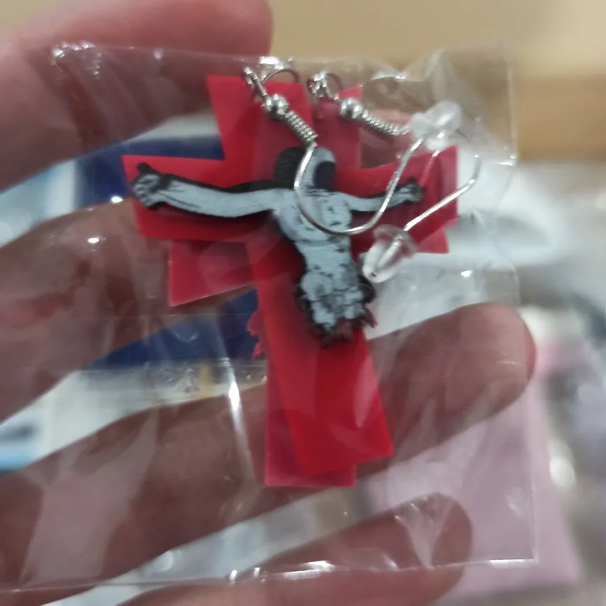 Огромные большие акриловые серьги с изображением Красного Креста Иисуса, ужасные большие крутые серьги-подвески в стиле панк для женщин и мужчин, ювелирные изделия для вечерние ринки в ночном клубе