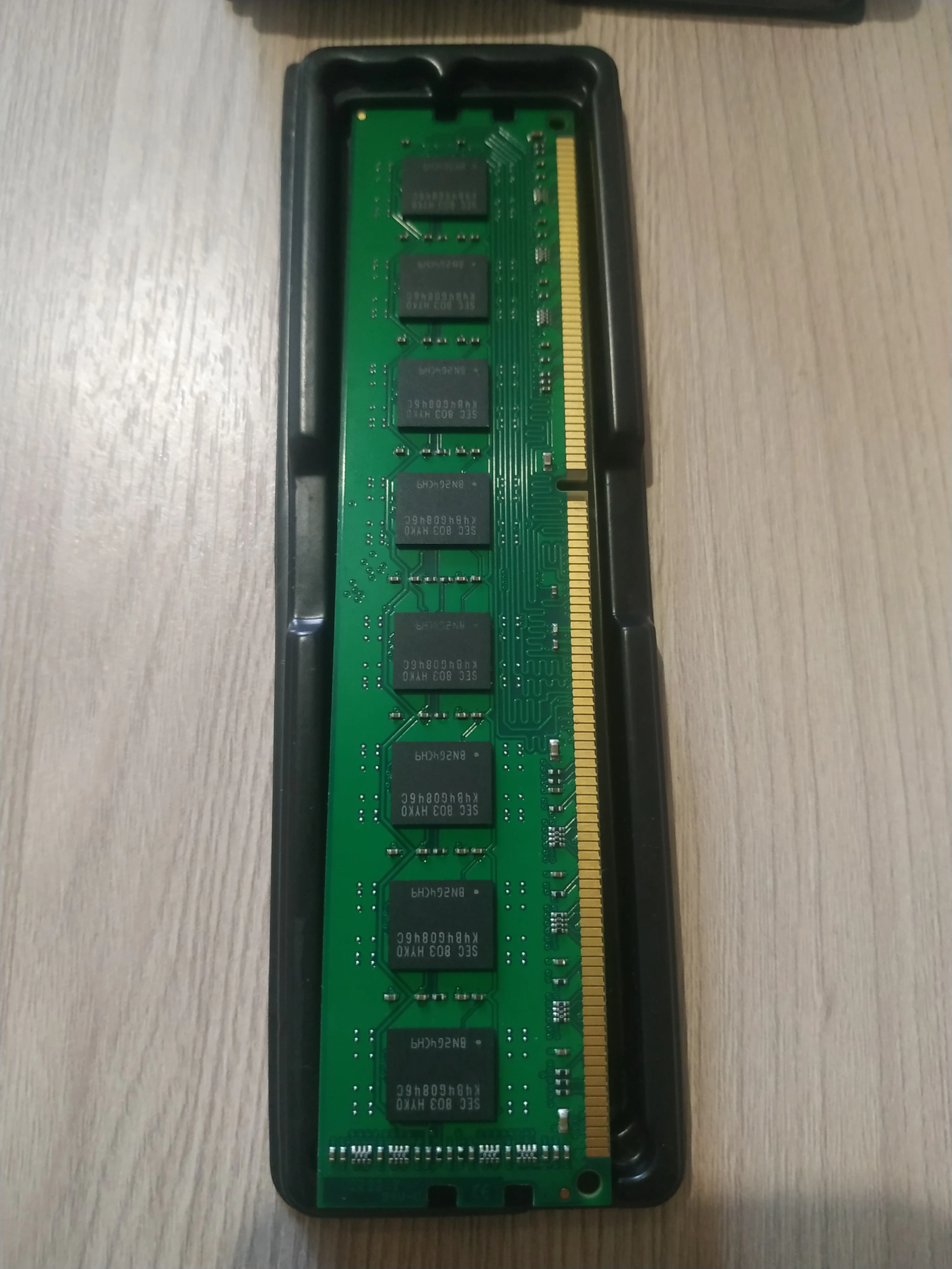 Как на фото, вставил вместо 2гб, все завелась, теперь вместо 6гб - 8гб, продавец не общительный совсем, перед покупкой я спрашивал, но он мне ничего не ответил, правда отправил почти сразу и дошло всё за 2 недели, трек отслеживался на всем пути. Планка новая без следов использования.