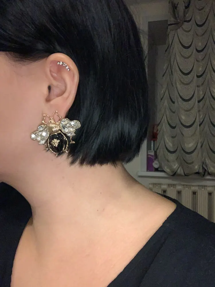 Серьги просто огромные, примерно 5 см в ширину . Смотрятся красиво. Но не без косяков - камушки в некоторых местах криво приклеены