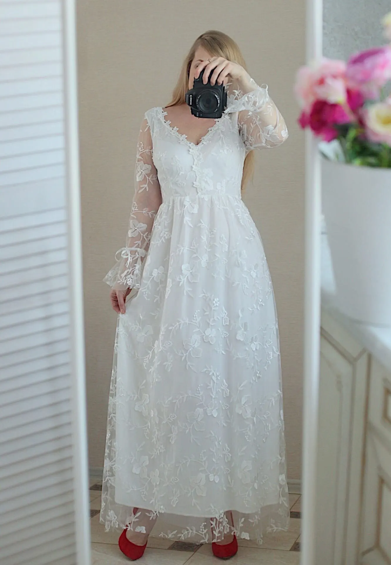 Ordifree 2022 летнее женское платье макси Вечерние платья с длинным рукавом длиной до пола Длина вышивка обувь белого цвета; Пикантная обувь с кружевами; С низким вырезом на спине Тюль длинное платье