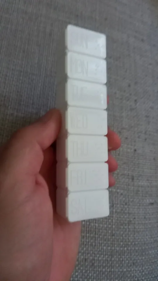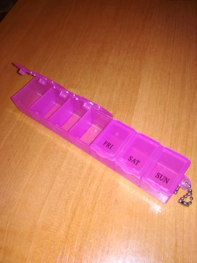 Поръчано на 12.11, получено 18.01, отговаря на описанието. Има натпис на английски език върху всяко капаче за дните от седмицата. Много удобно и практично за възрастни хора. Препоръчвам продавача.