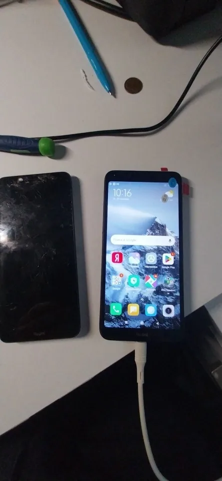 Доставлено быстро. Экран работает норм. Оригинальный поярче был.