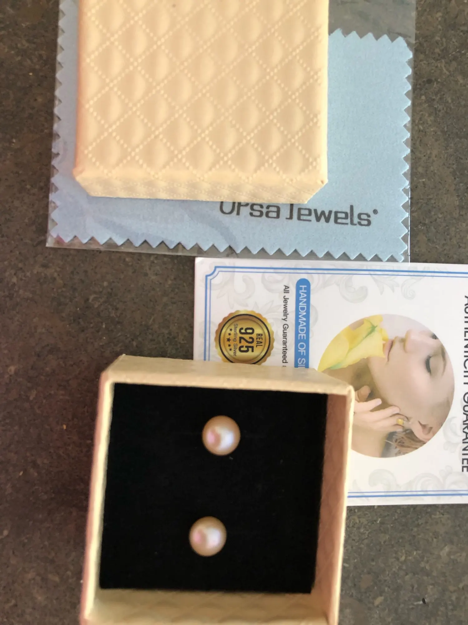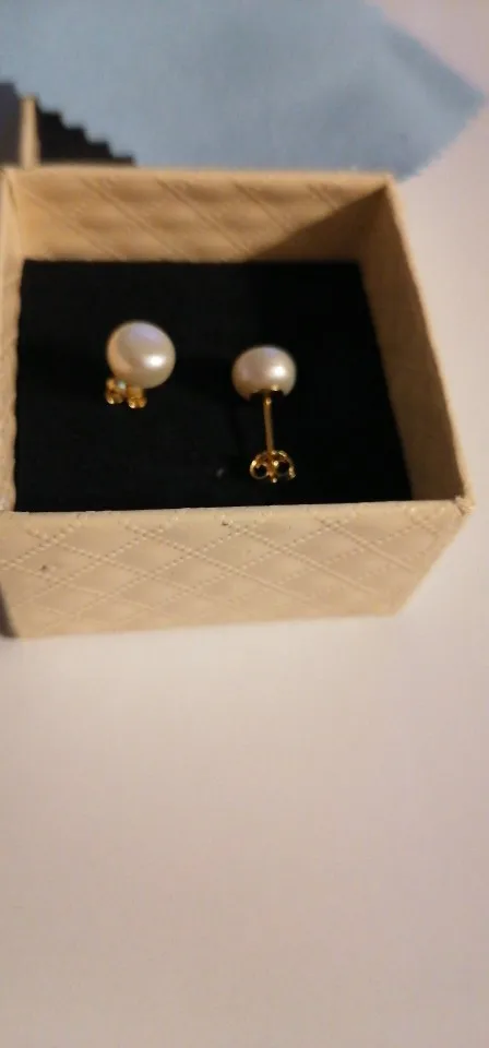 Сережки, вроде бы, выглядят, как на фото, но не совсем так... Цвет мутный, ближе к кремовому. Не похоже, даже, на речной жемчуг. На одной сережке, по всей окружности, идет борозда. Выглядит, как будто, склеили две половинки. Смотрятся, как очень дешевая имитация. Каковой, по сути, и являются. Носить не буду, однозначно. Скорее всего - выброшу. А вот упаковка на высоте - сережки находились в пакетике, ювелирной коробочке, пакете из пупырки, а, уже потом - в почтовом конверте. Кроме того, продавец положил, в подарок, салфетку для ухода за серебром. Доставка в Киев заняла около трех недель. Посылка пришла на пункт Новой почты. По итогу - отличный сервис и отвратительный товар.