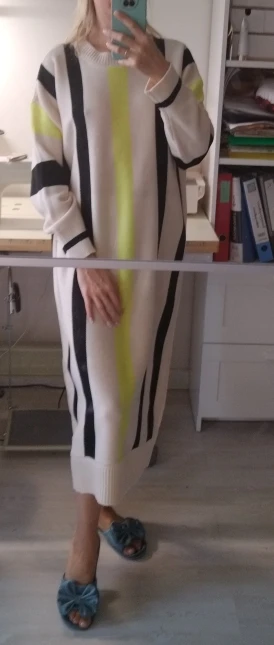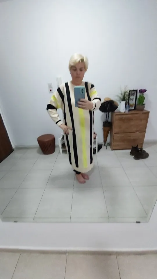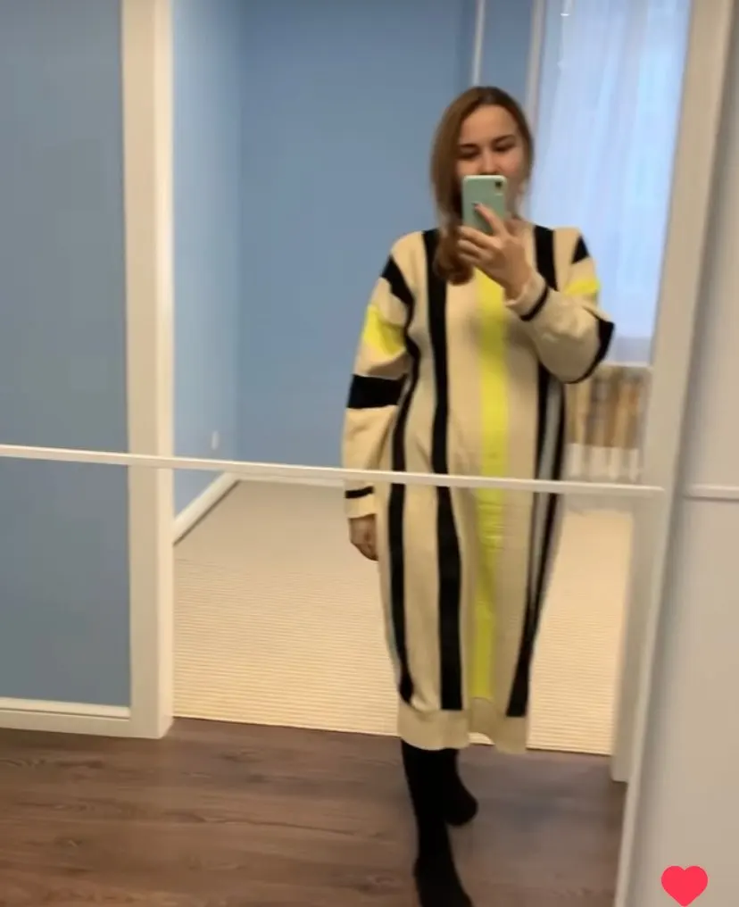 Осенне-зимнее новое длинное платье-свитер большого размера, женские свободные полосатые вязаные свитеры, Повседневные вязаные платья в Кор...