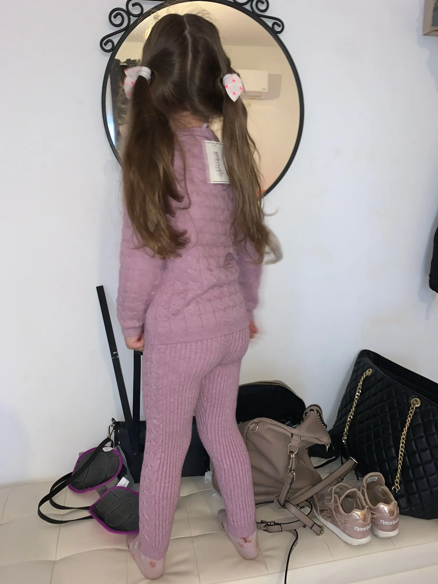 Костюмчик бомба! Цвет очень красивый. Мой фотик искажает. Однозначно рекомендую. Вязка мягкая, не колючая.