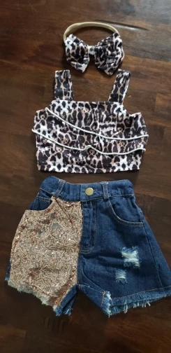 От 0 до 3 лет; Джинсовая одежда для детей одежда для малышей для девочек, платье без рукавов с леопардовым принтом кроп-топы с бретельками, Hipster Жан шорты 2022 летний комплект детской одежды