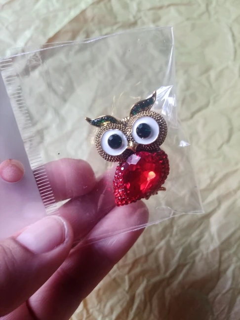 Моя совушка уже у меня. Не очень понравилось то что камень просто торчит сверху, а не утопает. Замок надёжный, можно носить как кулон. Без брака. Пришла быстро. Спасибо!