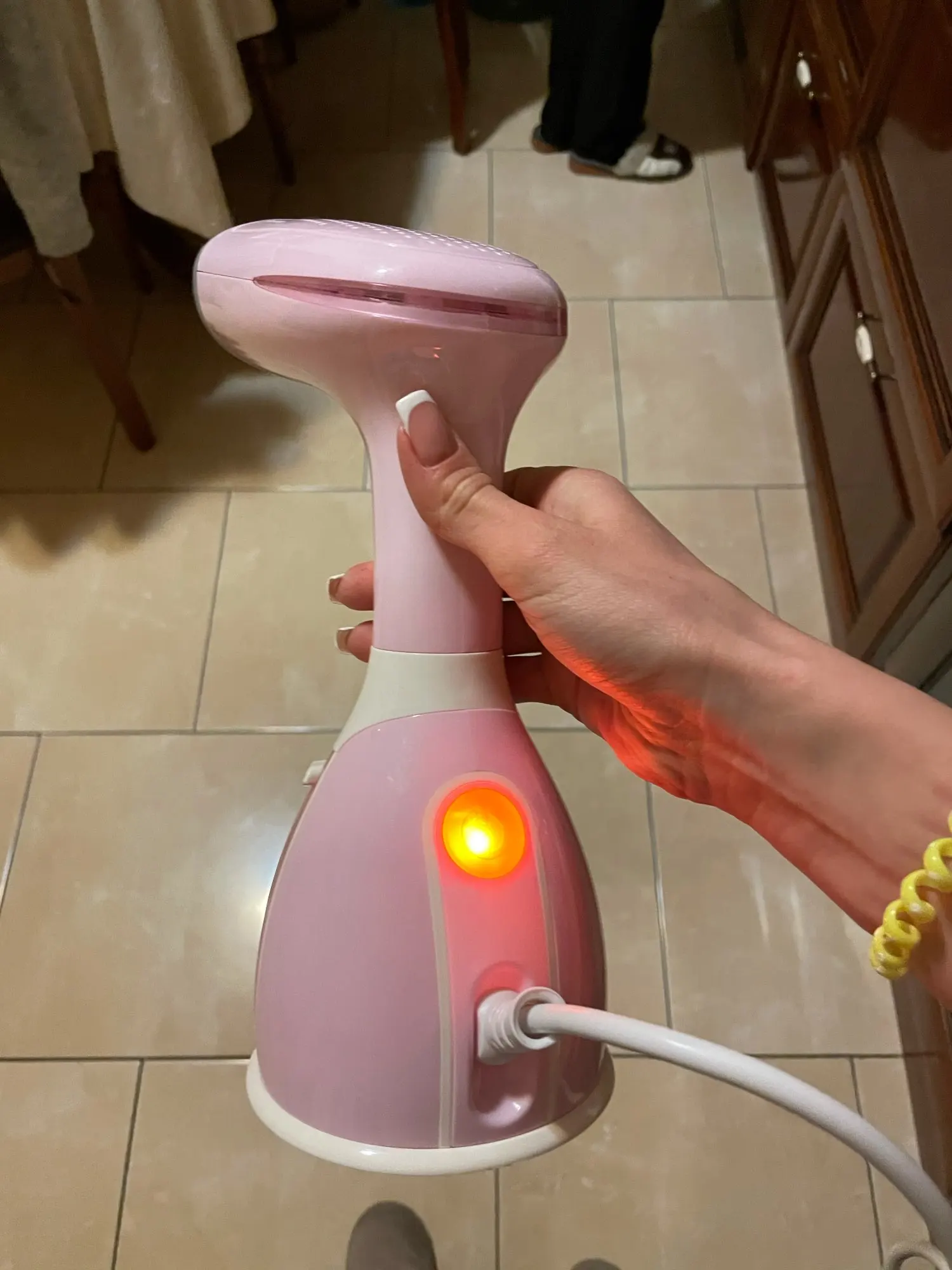 Пластик плохого качества, очень слабый, ничего не отпаривает. Пробовала тюли, легкие и натуральные ткани, но ничего.