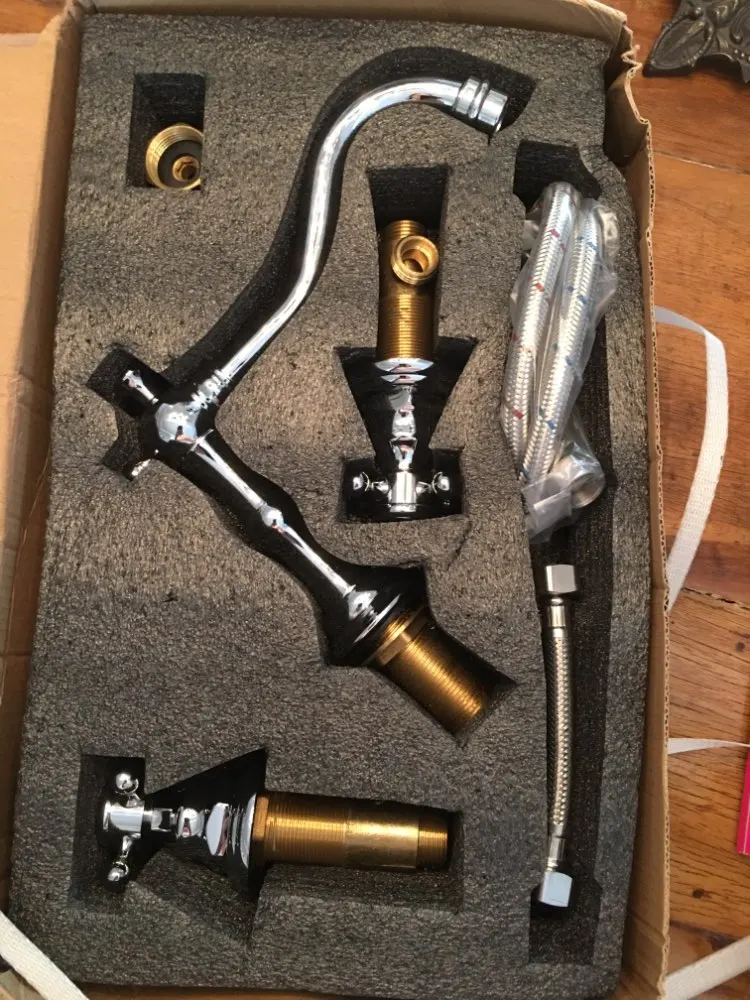 OUBONI хромированный Твердый латунный античный латунный черный шар для ванной комнаты, кухонный смеситель для раковины, кран для раковины с двумя ручками, 3 шт., смеситель для раковины