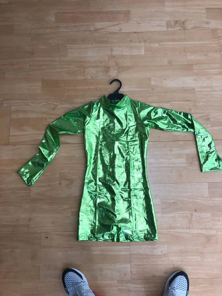 Metallic biketard with thumbholes, back zipper