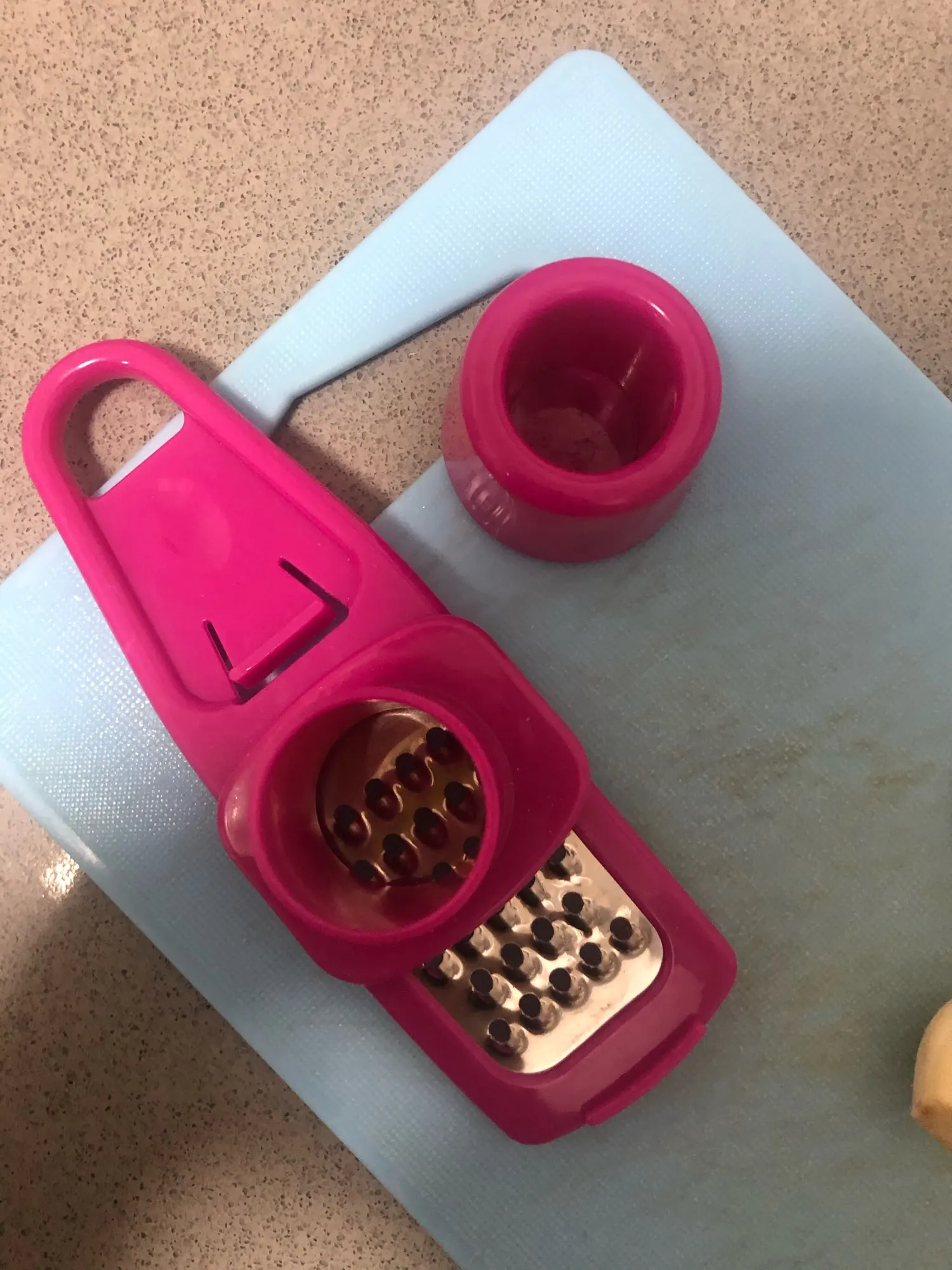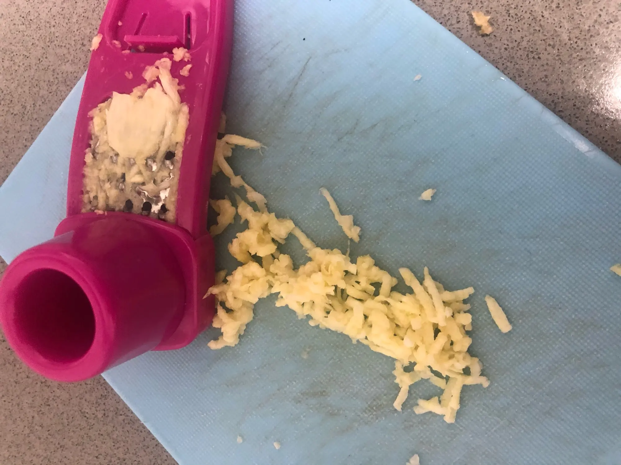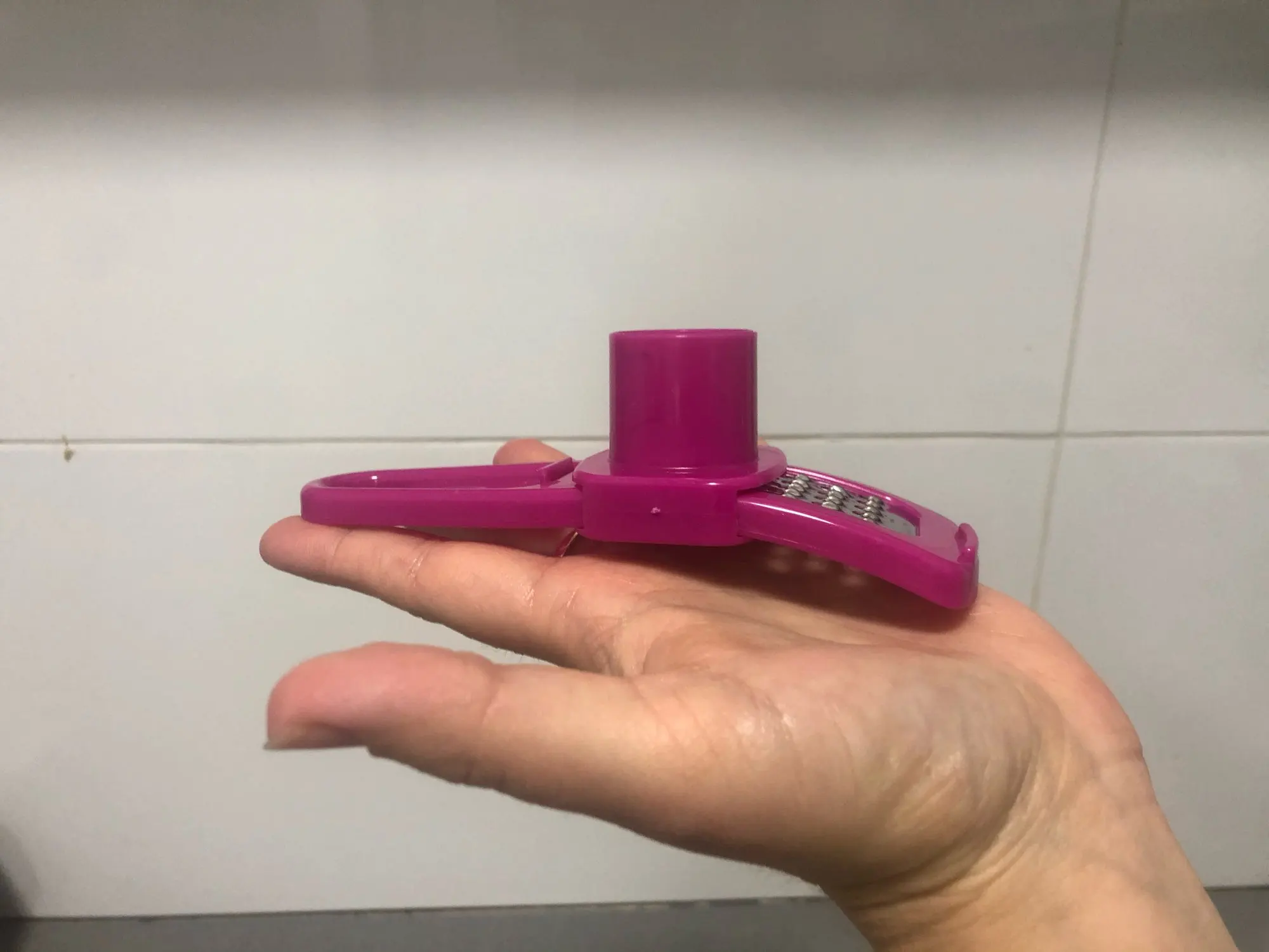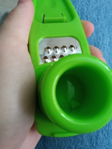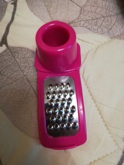 Посылка пришла быстро, за 2 недели до МО. Терка изогнутой формы, бегунок перемещается по тёрке нормально. Рекомендую, очень удобно