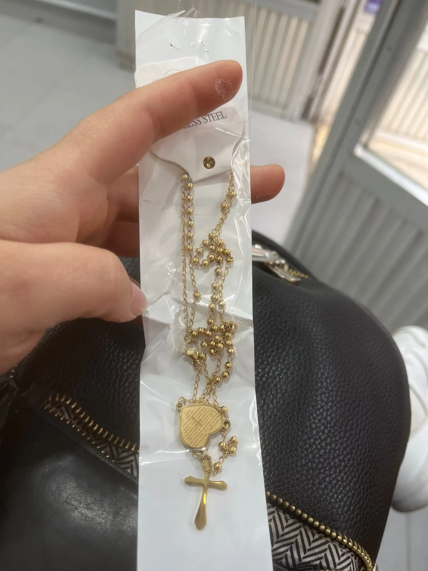 Пришла через 3 недели в г. Ярославль. Цепь тонкая, сердечко маленькое 1,5 см, на картинке выглядит больше, крестик тоже небольшой см 2 в высоту и 1,5 см в ширину. Не длинная. Смотрится симпатично.