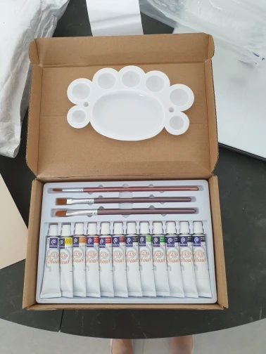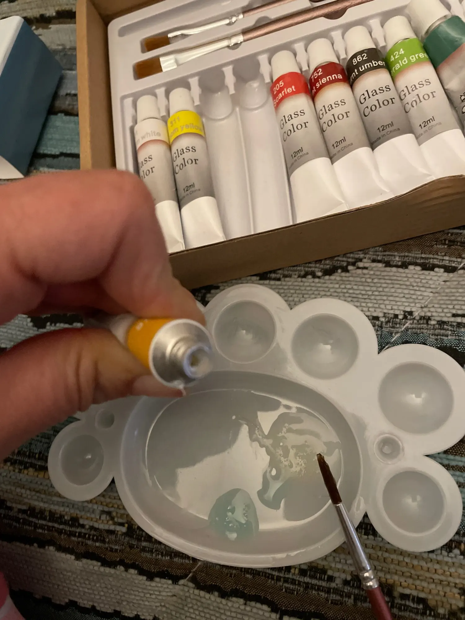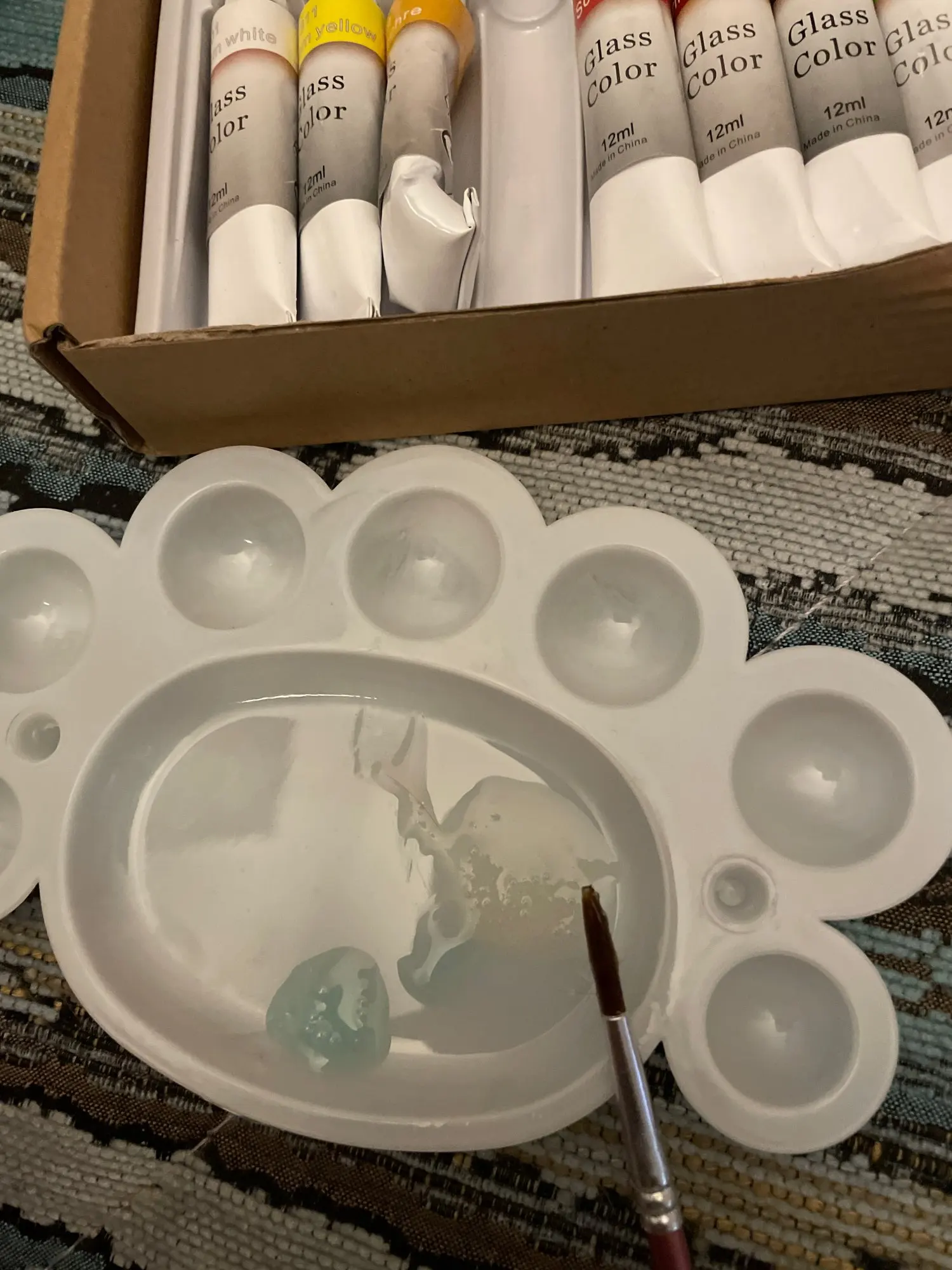 12 Glass Paint Tubes , 3 nylon brushes , A Palette
