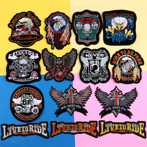 Панк стиль орел буквы лапа Live to Ride Череп Вышивка Патчи для Глажка одежды на байкерском аппликация на одежду стикер значок