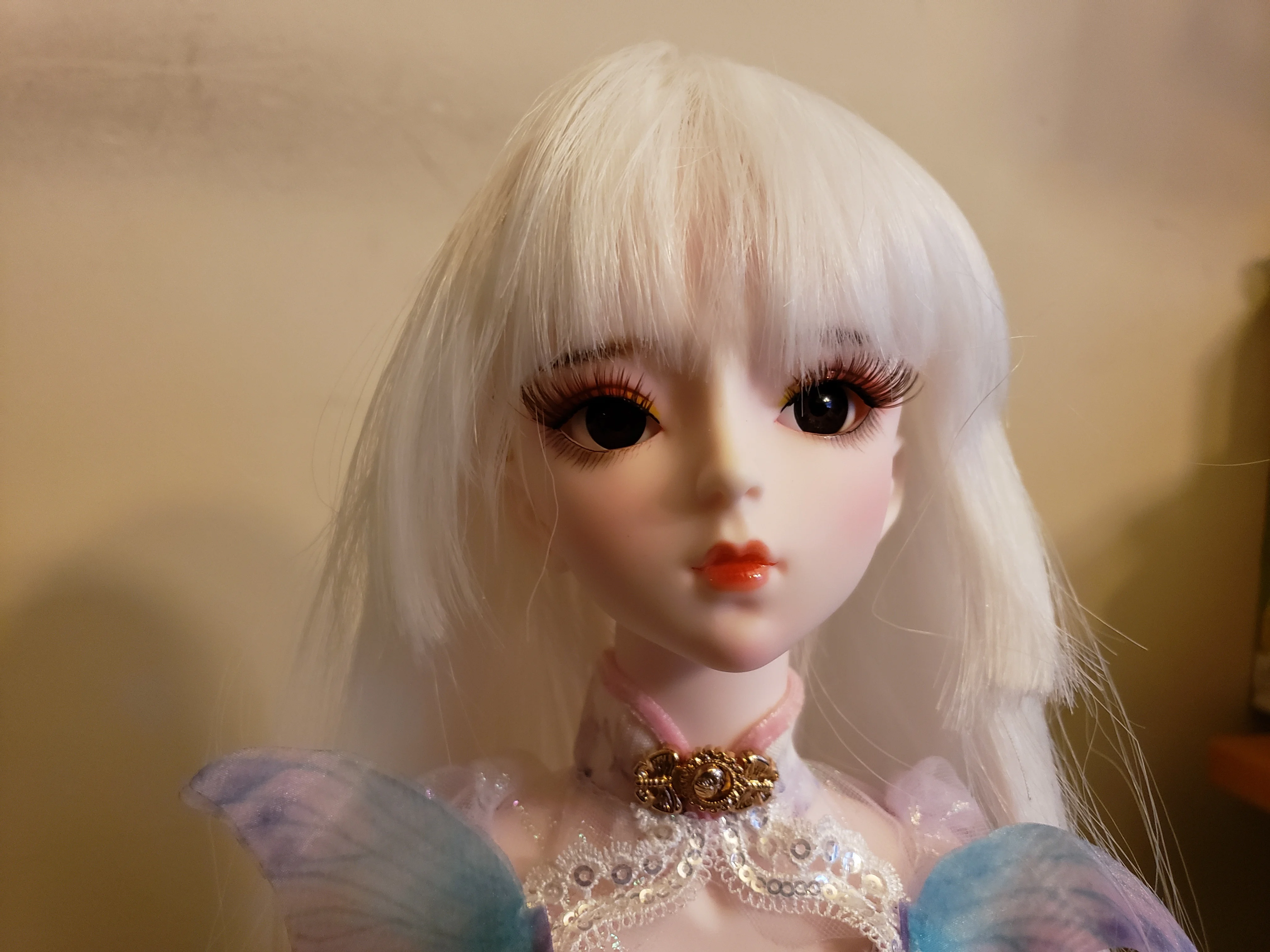 Быстрая доставка. В комплект входят липучки для крепления к голове. На куклу 1/3 подошёл идеально. Волосы длинные, густые. Рекомендую. Стоит своих денег.