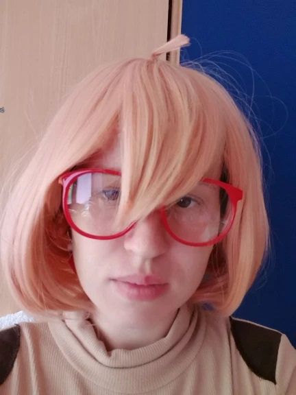 Парик Kyokai no Kanata Косплей-костюм Kuriyama Mirai, короткие, оранжевые, розовые, термостойкие синтетические волосы + красные очки + шапочка для парика