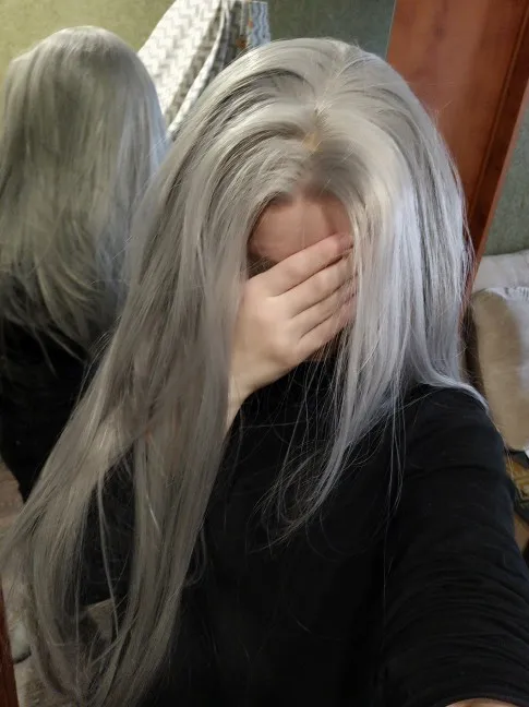 Парик Vogue Queen серебристо-серый из синтетического кружева спереди, длинный прямой высокотемпературный волоконный Повседневный для женщин