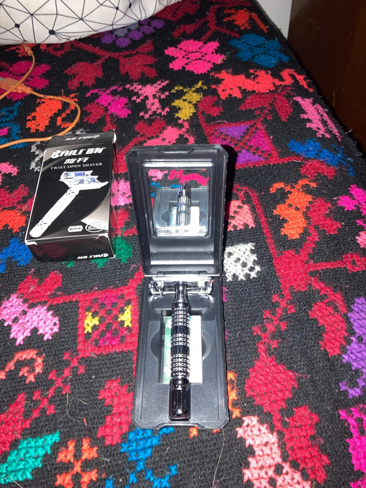 Парикмахерская бритва двойной край бабочка поворот Открытый Т-образный унисекс 1 чехол для путешествий с зеркалом