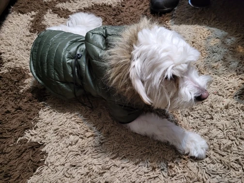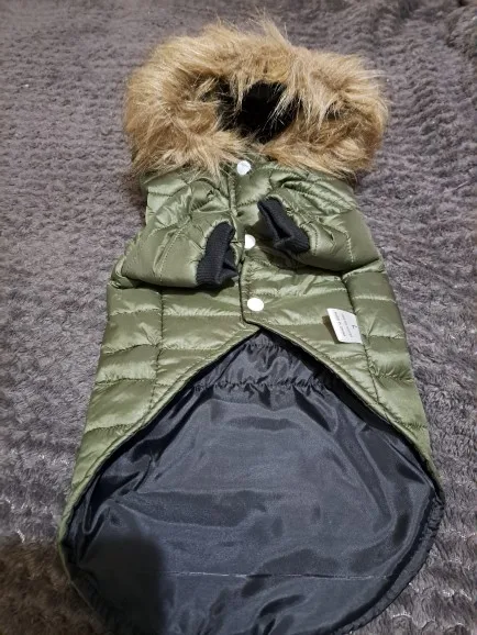 Отличная курточка, качественно сшита, самое главное идеально села на собаку, так что размеры у продовца точные. Фото не прикладываю, что на картинке, то и в посылке)