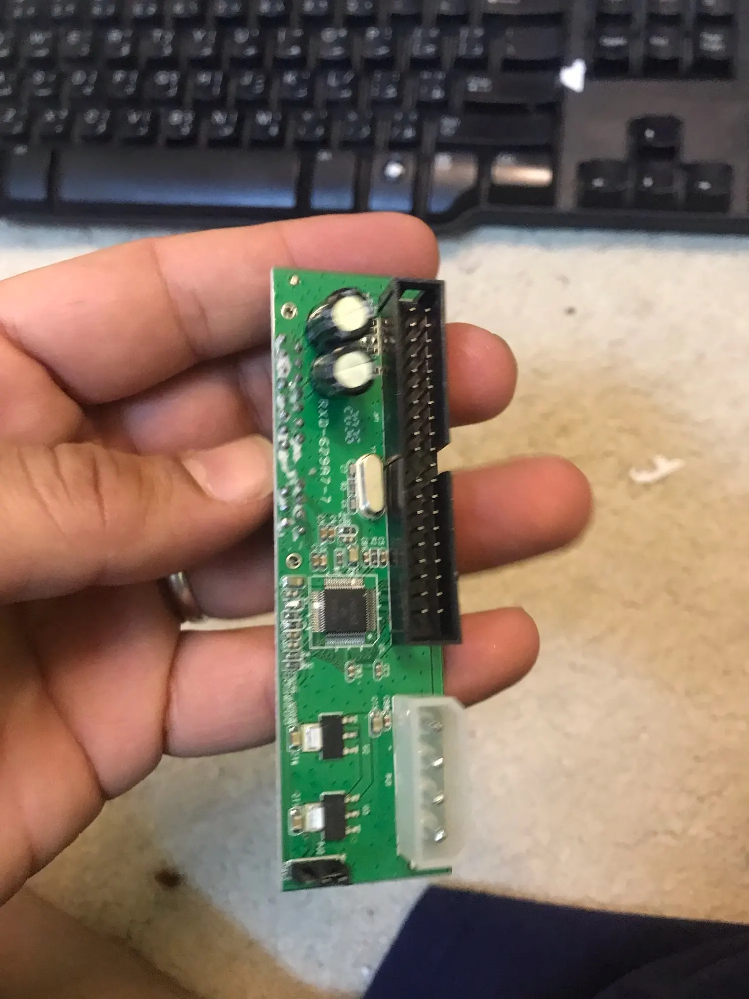 Переходник проверить не смог, нужно городить переходники. На фото заказа, плата имеет зеркальное отображенние, в дубликатор не всавляется. Когда внимательно посмотрел на обозначенния элементов увидел это недоразумение. Флюс на плате не отмыт.
