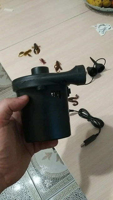 покупкой доволен. качаю лодку ПВХ: основной объем быстро нагоняет, докачиваю насосом. работает от заряжаемого аккумулятора. очень удобно пользоваться, никаких проводов не надо.