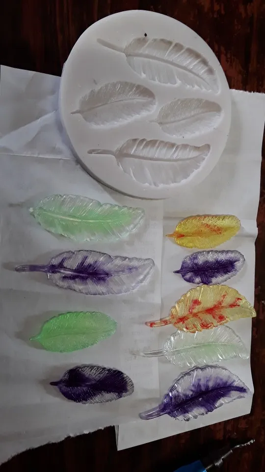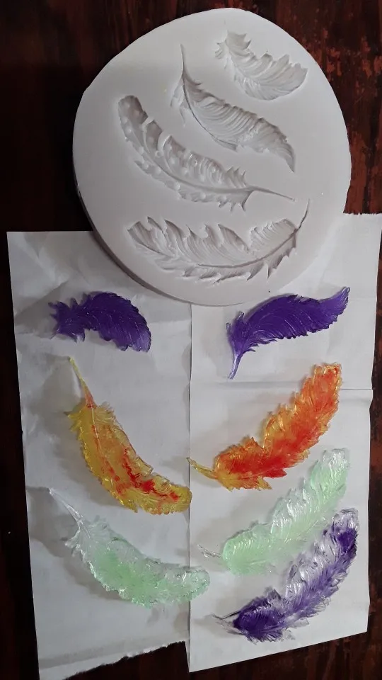 Зделал на быструю руку, вот что получилось. Одно перышко поламалось, очень хрупкая вещь, надо чем-то змазывать чтоб лучше вытаскивать из формы. В так в принцепе штука прикольная, тот хто етим занимается в полне подойдёт к украшению тортов или что-то похоже.