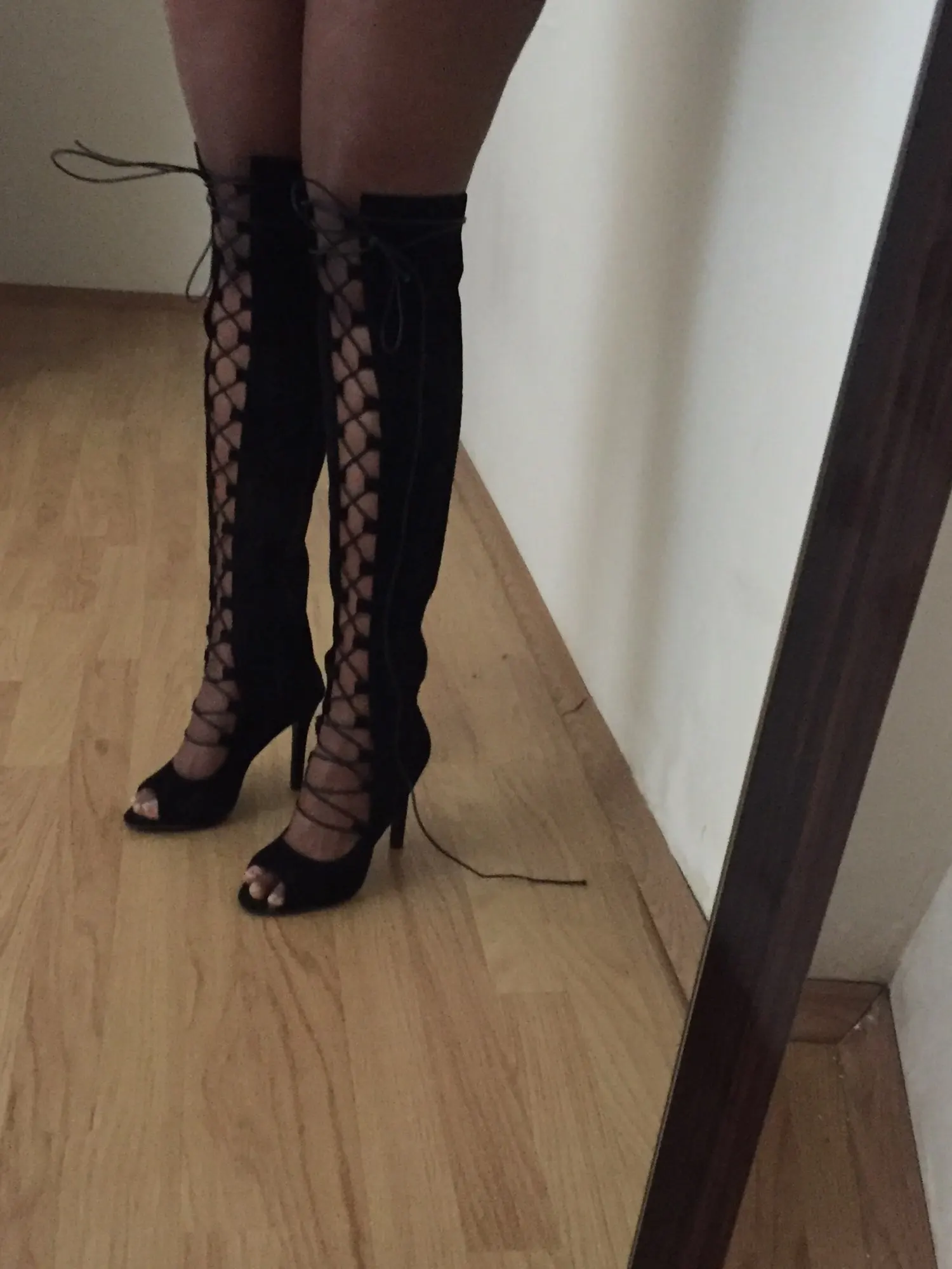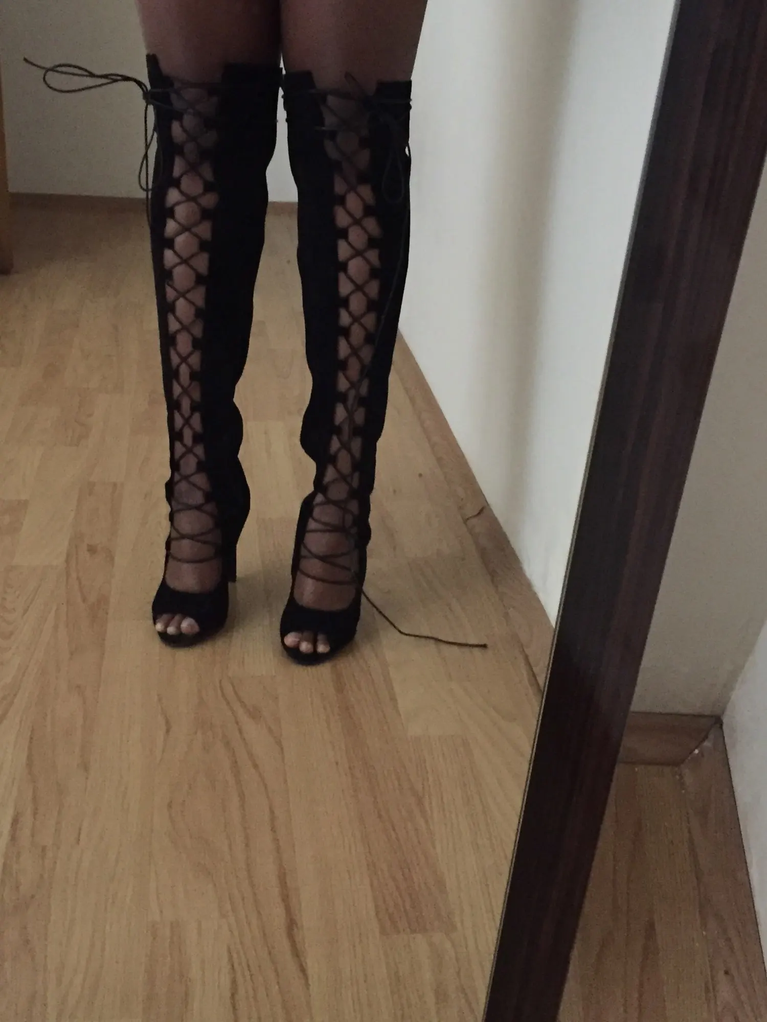 Сапоги красивые, пришли с браком. Веду спор о возврате части денег, пришли быстро. Размер надо брать свой.