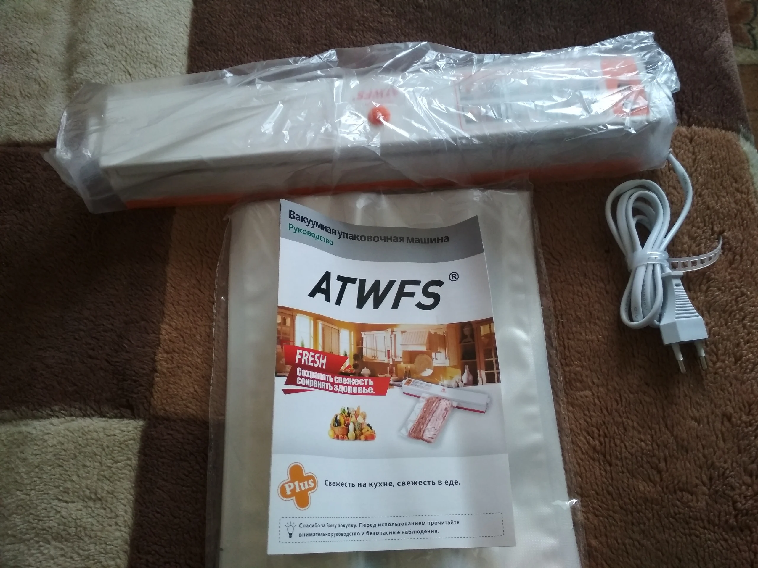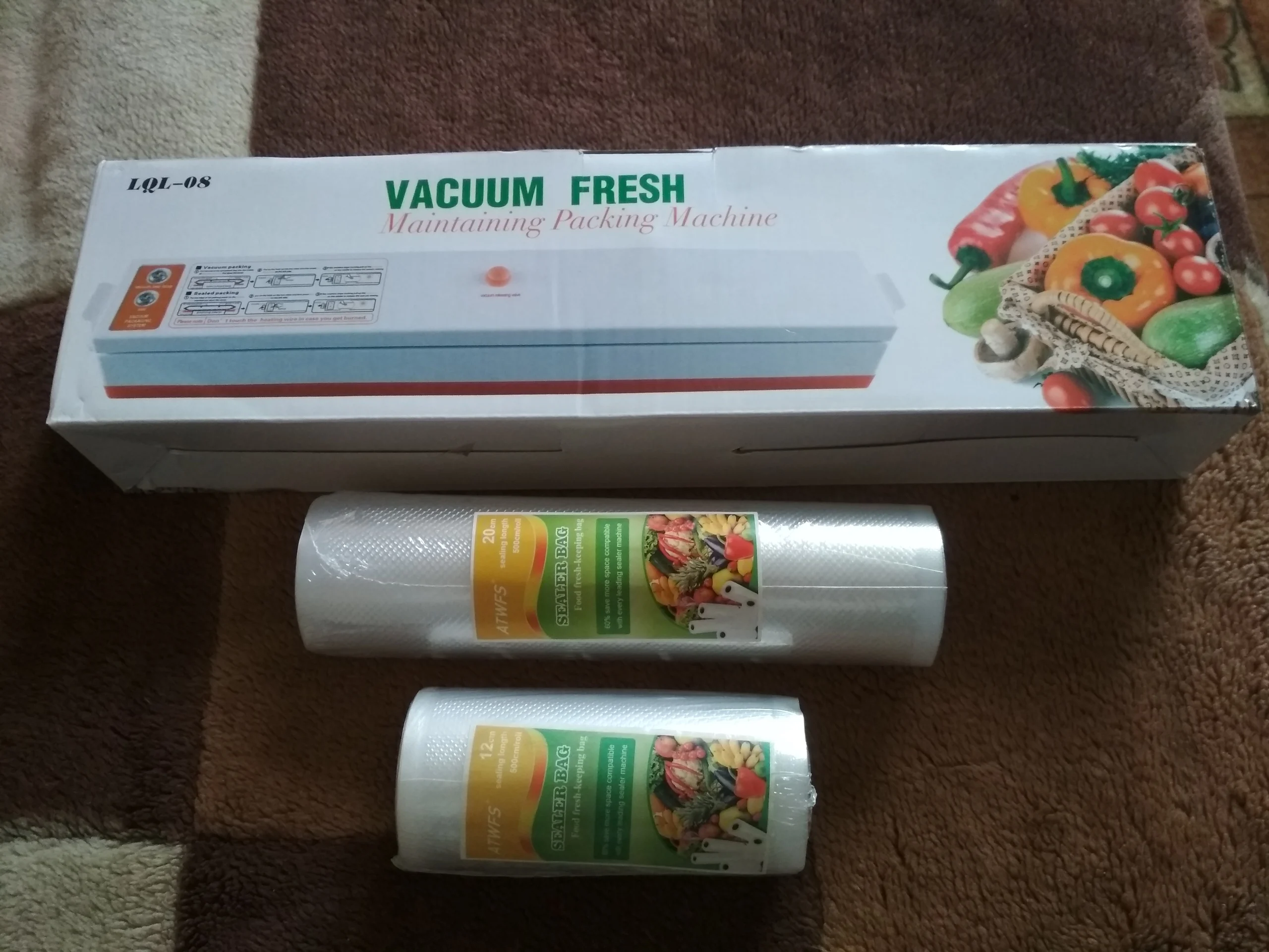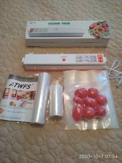 Пищевой вакуумный упаковщик ATWFS, упаковочная машина, в комплекте 15 пакетов и рулоны для вакуумной упаковки, 20 Х500 см + 12 Х500 см