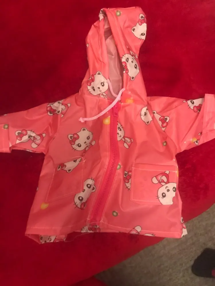 отличная курточка ребенок счастлив, она в восторге от этого плащика, без запаха и дыр, по качеству пять звезд, не промокнит под дождем, как настоящий, продавцу спасибо будем брать еще, рекомендую