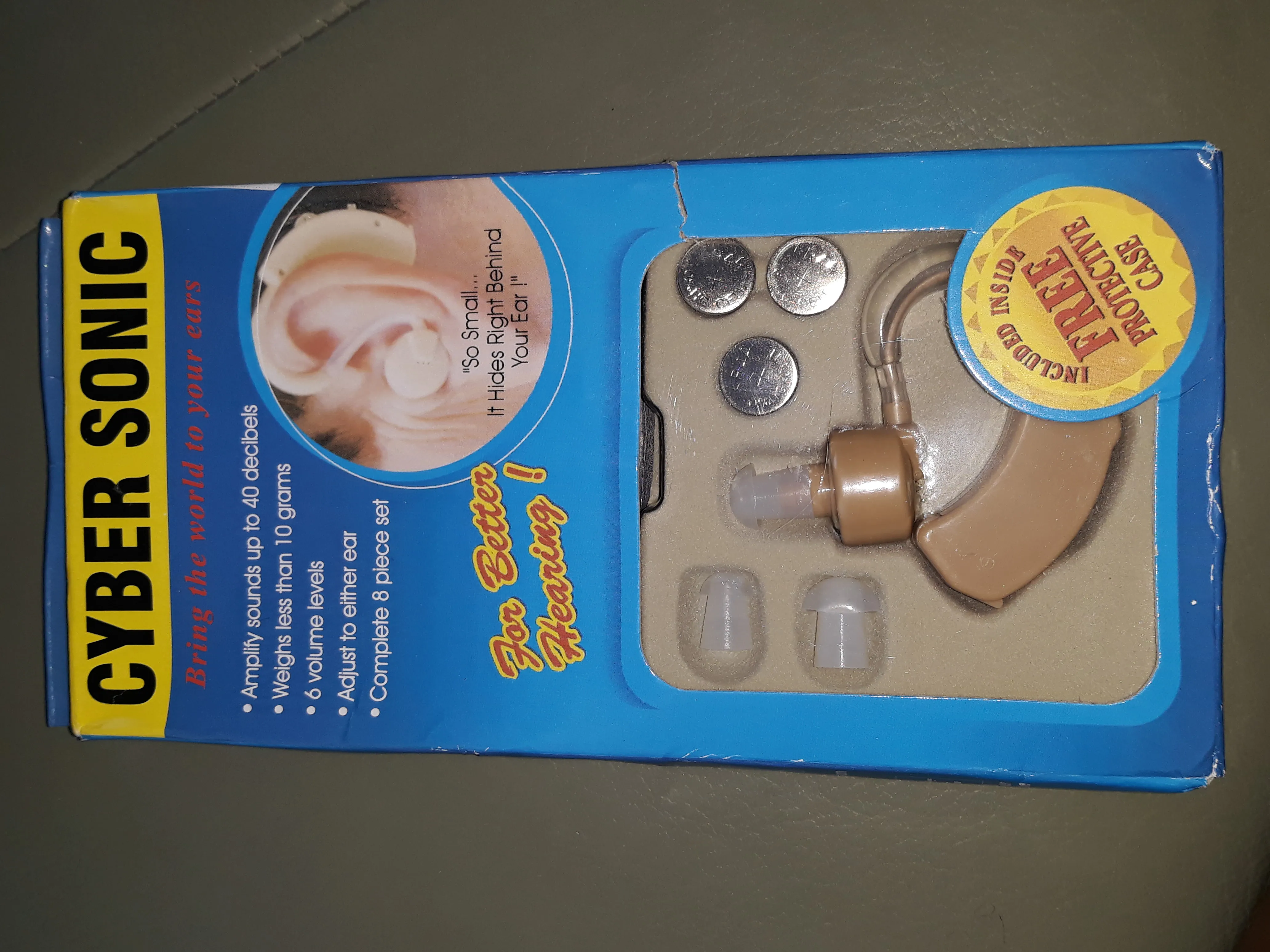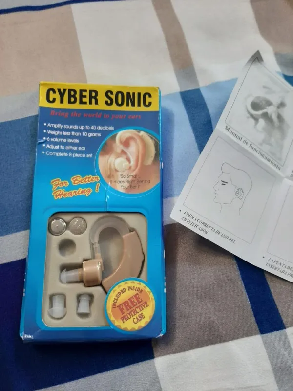 Формально аппарат работает, но пользоваться им невозможно. Очень маленькое усиление. Звук очень плохо слышно даже здоровым ухом. Не покупайте. Formally, the device works, but it is impossible to use it. Very small gain. The sound is very hard to hear even with a healthy ear. Don't buy it.