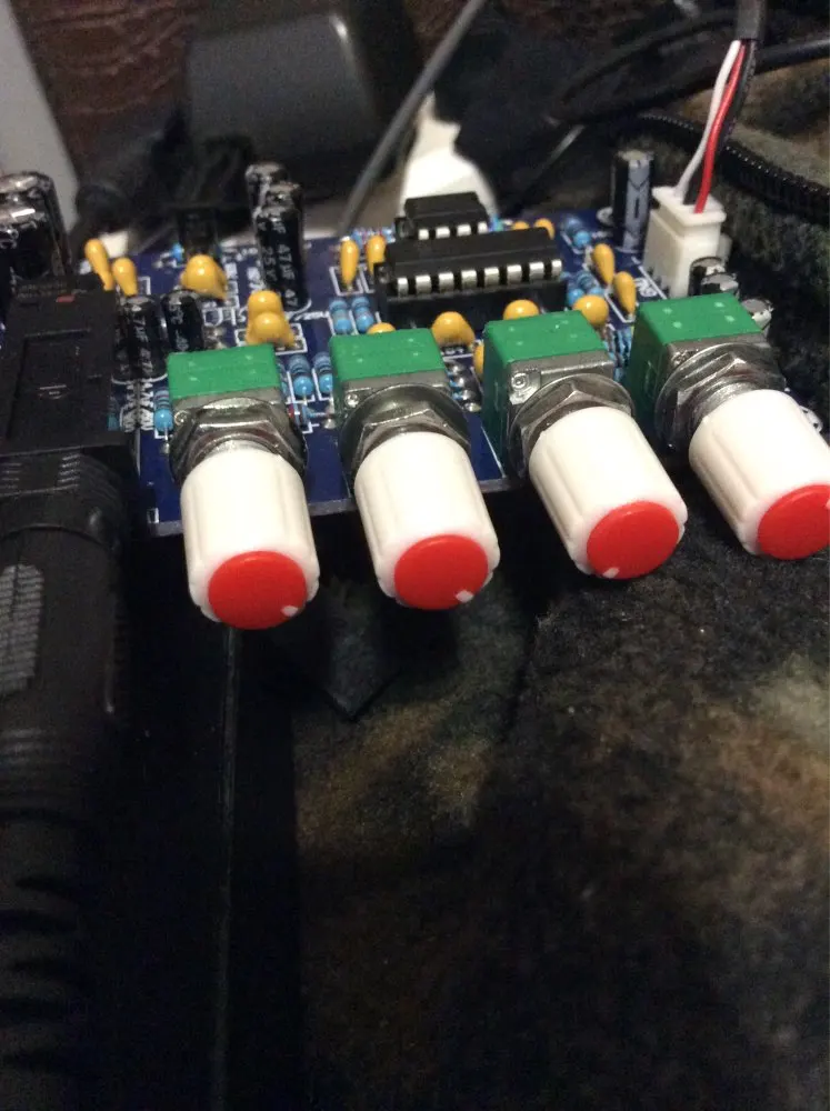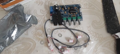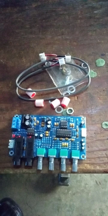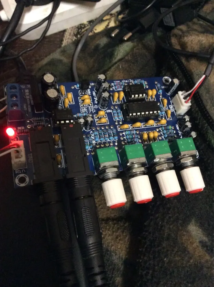 Усилитель микрофона пришёл быстр. Ручки регулятора поставлялись не капкан картинке, но мне не принципиально. Пришлось заморочиться с блоком питания, для этой схемы требуется двухполярное питание. В итоге запитан питанием ±13.5В. Работает хорошо!