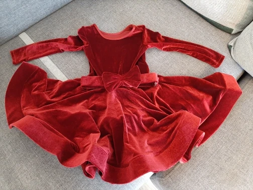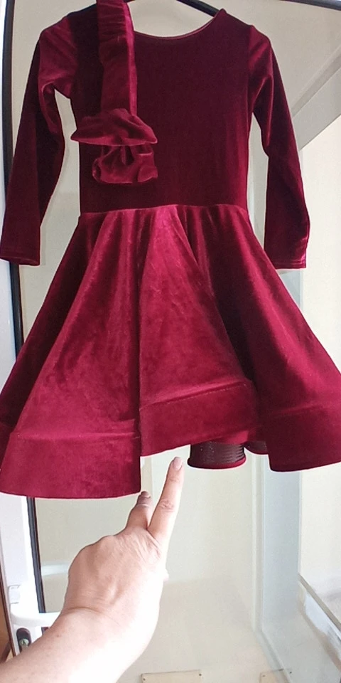 Брала L на рост 118, платье без купальника, трусы сделаны шортиками чёрного цвета из лайкры, пояс отдельно, бант сразу отпорола, следов не осталось, у целом не плохо, но требуются доработки, нужно подобрать ткань и дошить купальник