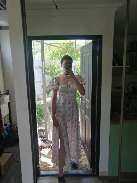 Платье-Макси женское с цветочным принтом, квадратным вырезом и рукавами-фонариками