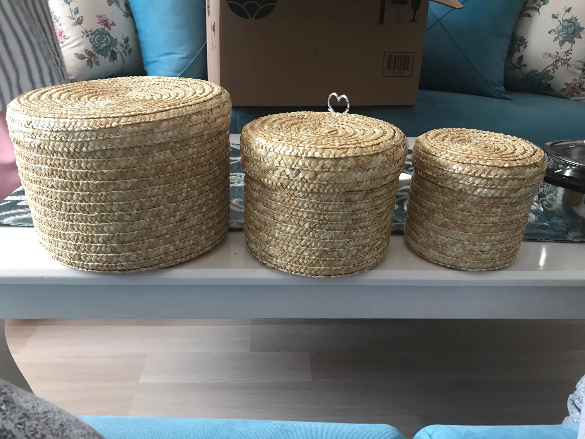 Плетеная корзина для хранения соломы ручной работы, 3 шт./компл., с крышкой, органайзер для закусок, ящик для хранения, корзины для белья, ротанговые корзины для хранения цветов