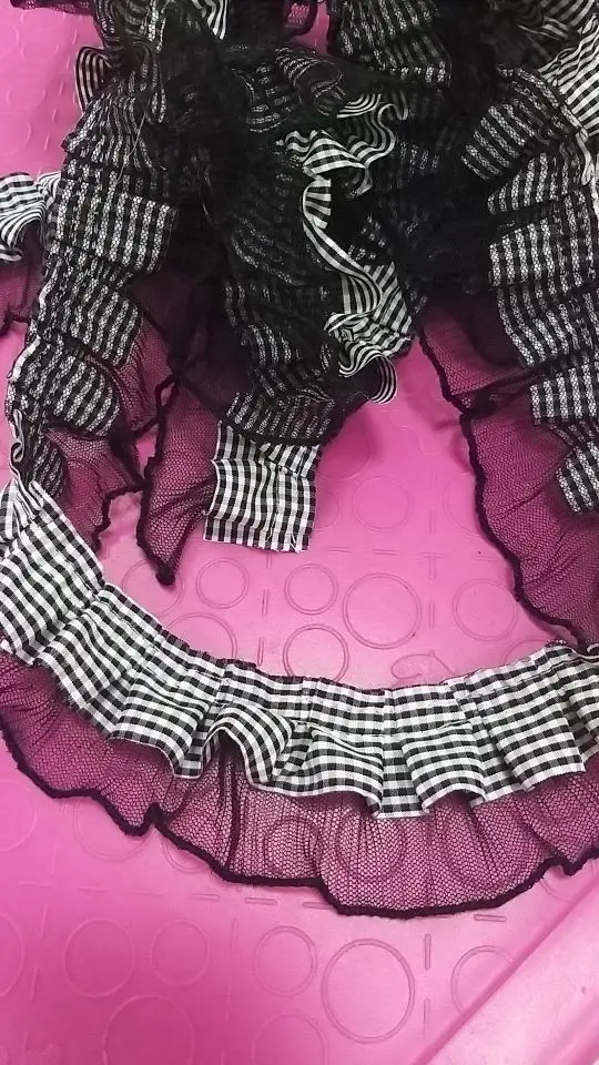 Плиссированная кружевная лента, белый и черный Плиссированный Воротник из плетеной атласной ленты, с вышивкой, аксессуары для шитья и украшения одежды, шляп, 6 см
