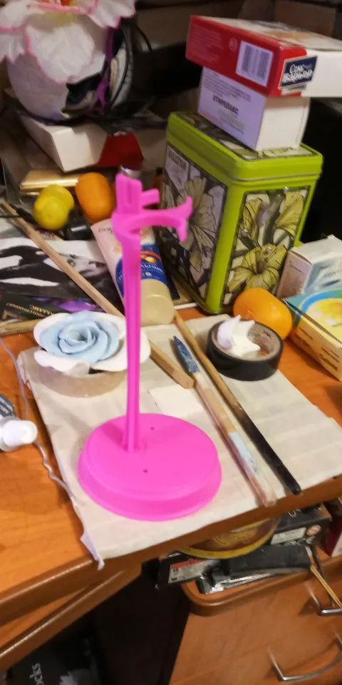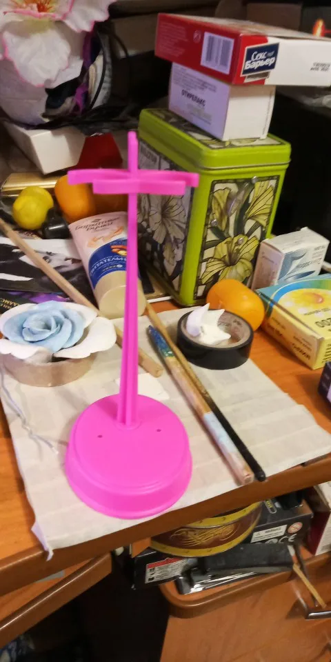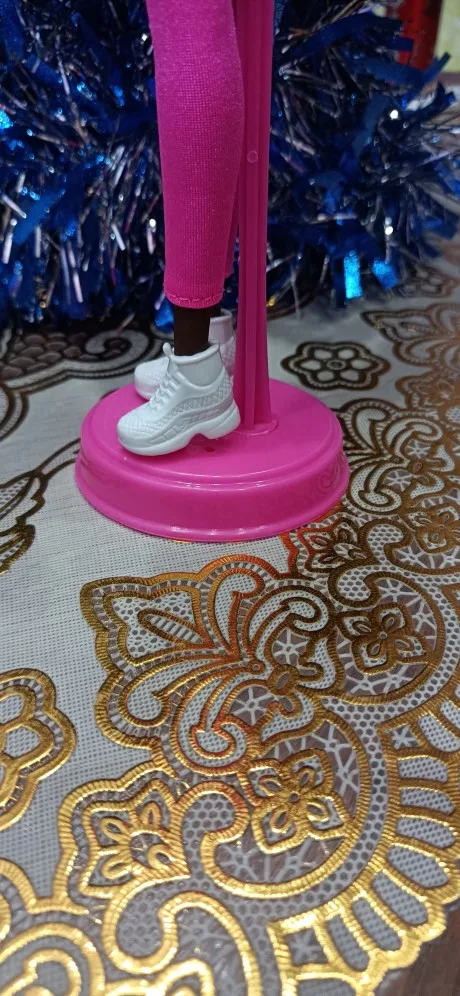 подставка подходит для Монстров, но барби не устойчива ибо падает назад если нет опоры сзади. Цвет пришел розовый, а не белый как на фото. При заказе имейте в виду что цвет может придти рандомный