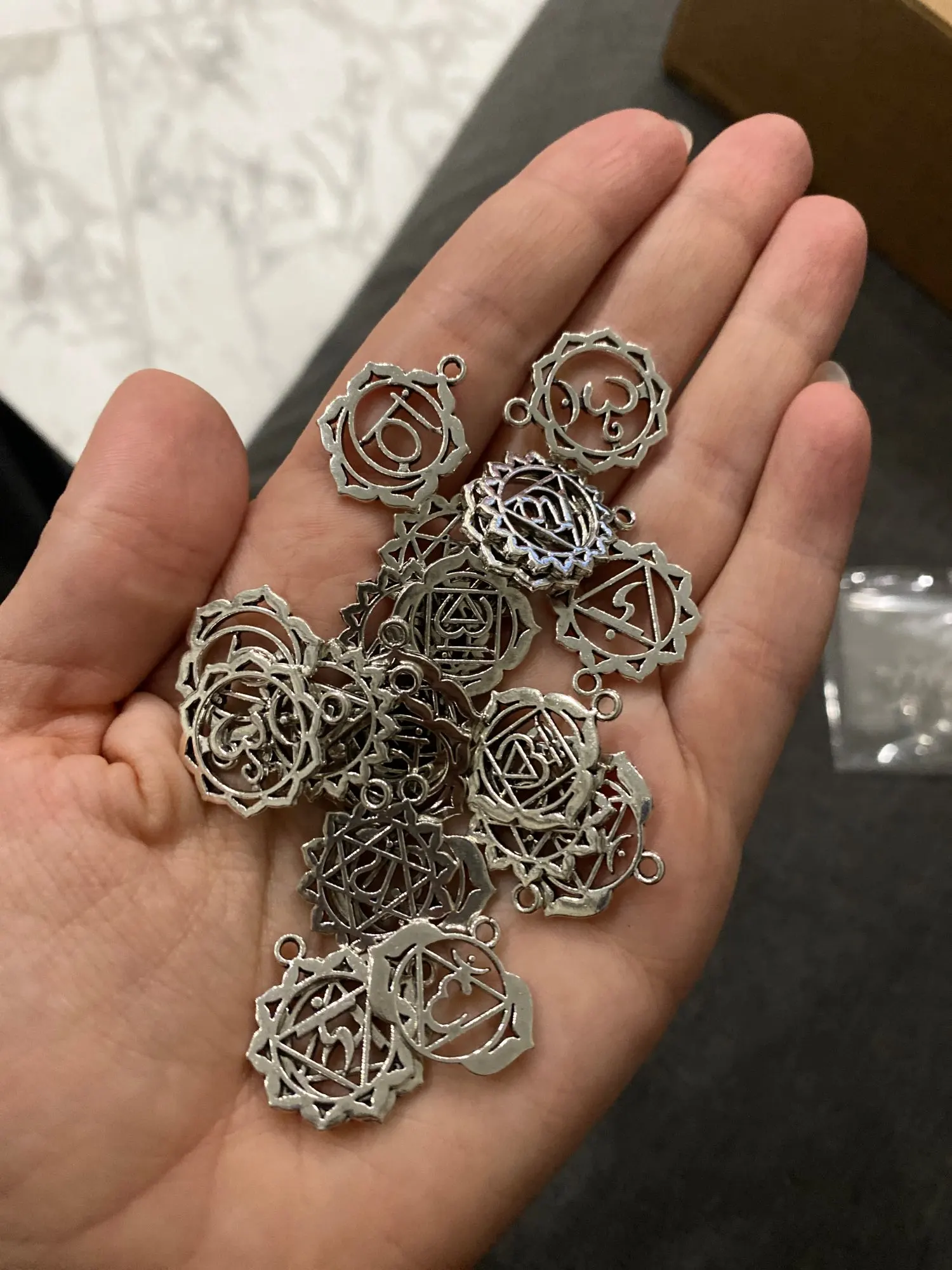 Подвеска-талисман серебряного цвета для йоги, 7 чакр, 21 шт.