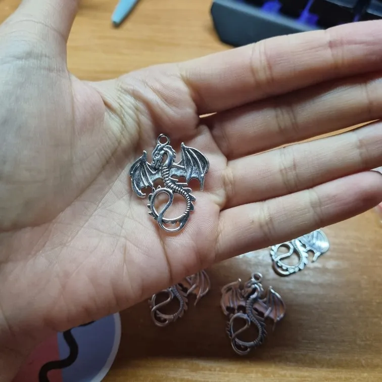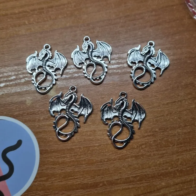 Подвески с драконом, 5 шт., 27*34 мм, АНТИЧНЫЙ ТИБЕТСКИЙ Серебристый кулон, аксессуары для самостоятельного изготовления, винтажный браслет, ож...