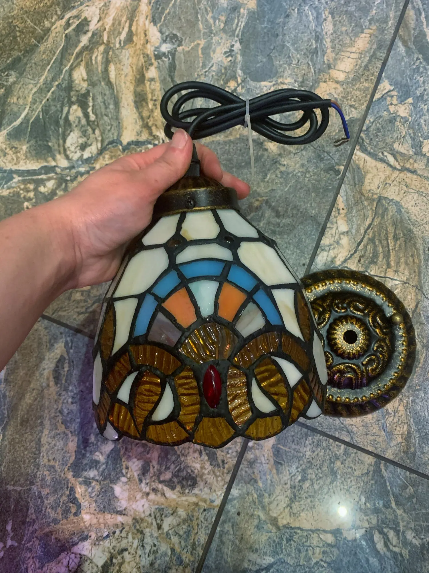 Подвесные светильники в стиле ретро, витражное освещение, Подвесная лампа в средиземноморском стиле, винтажная лампа для гостиной, кухни, д...