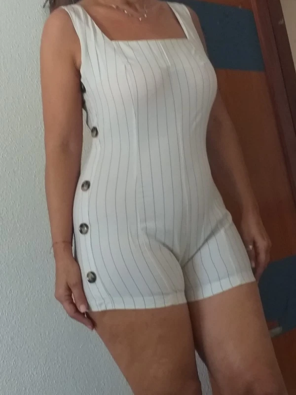 Полосатый комбинезон на тонких лямках, с пуговицами сбоку