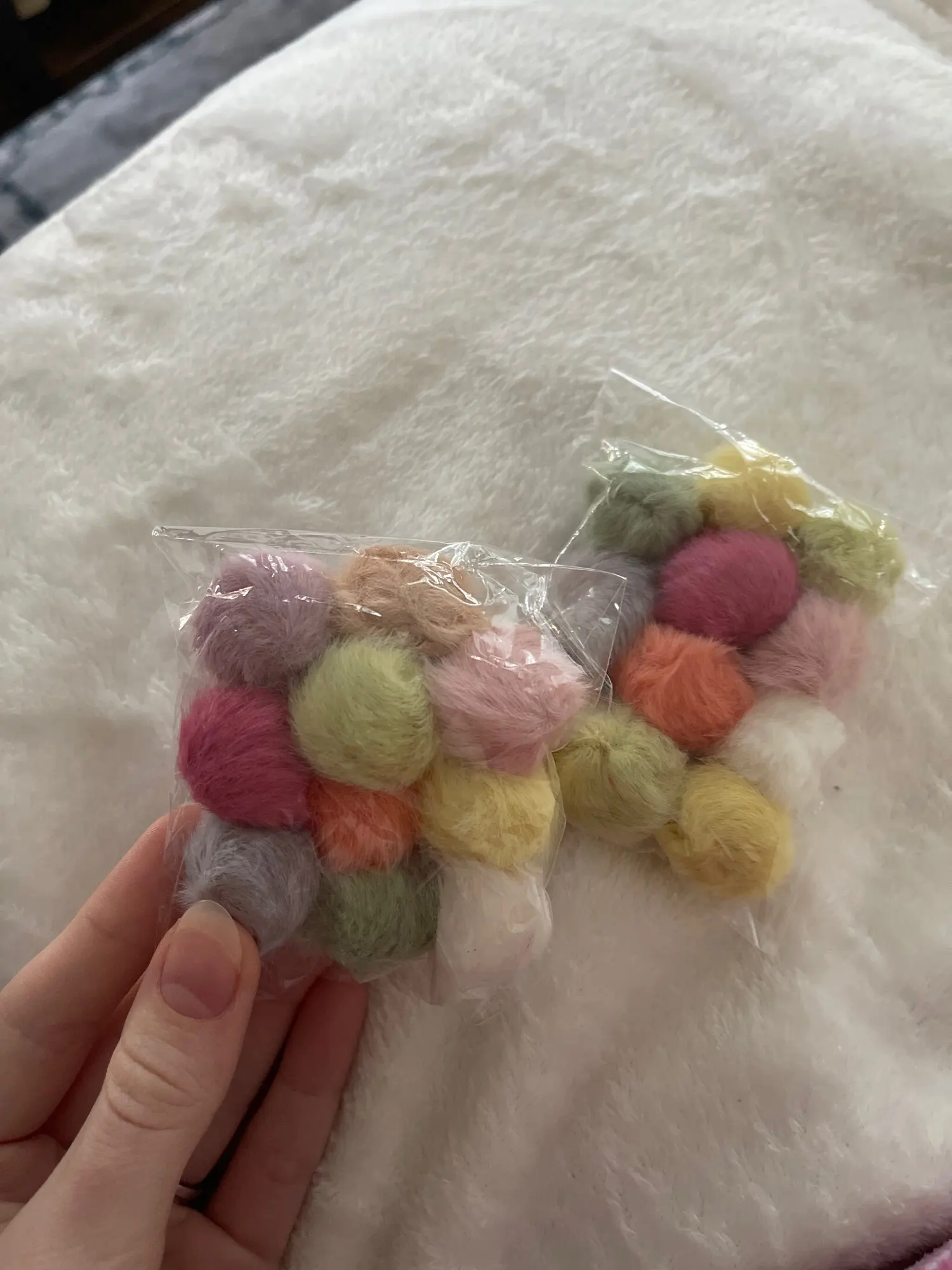 Милые помпончики. Цвета приятные, брала рандом хотела посмотреть какие цвета есть, и качество. Доставка можно сказать что быстрая, с продавцом не общалась.