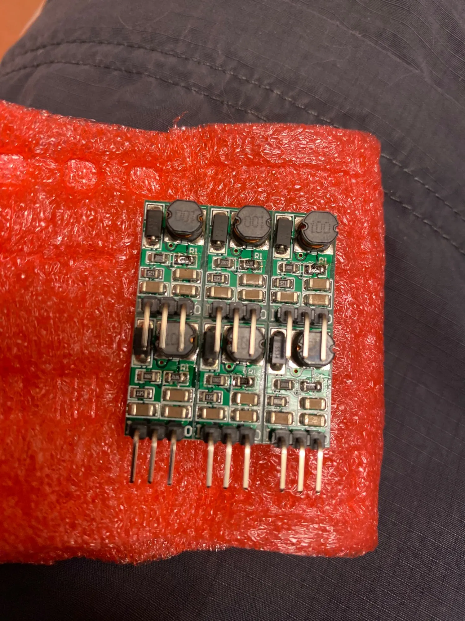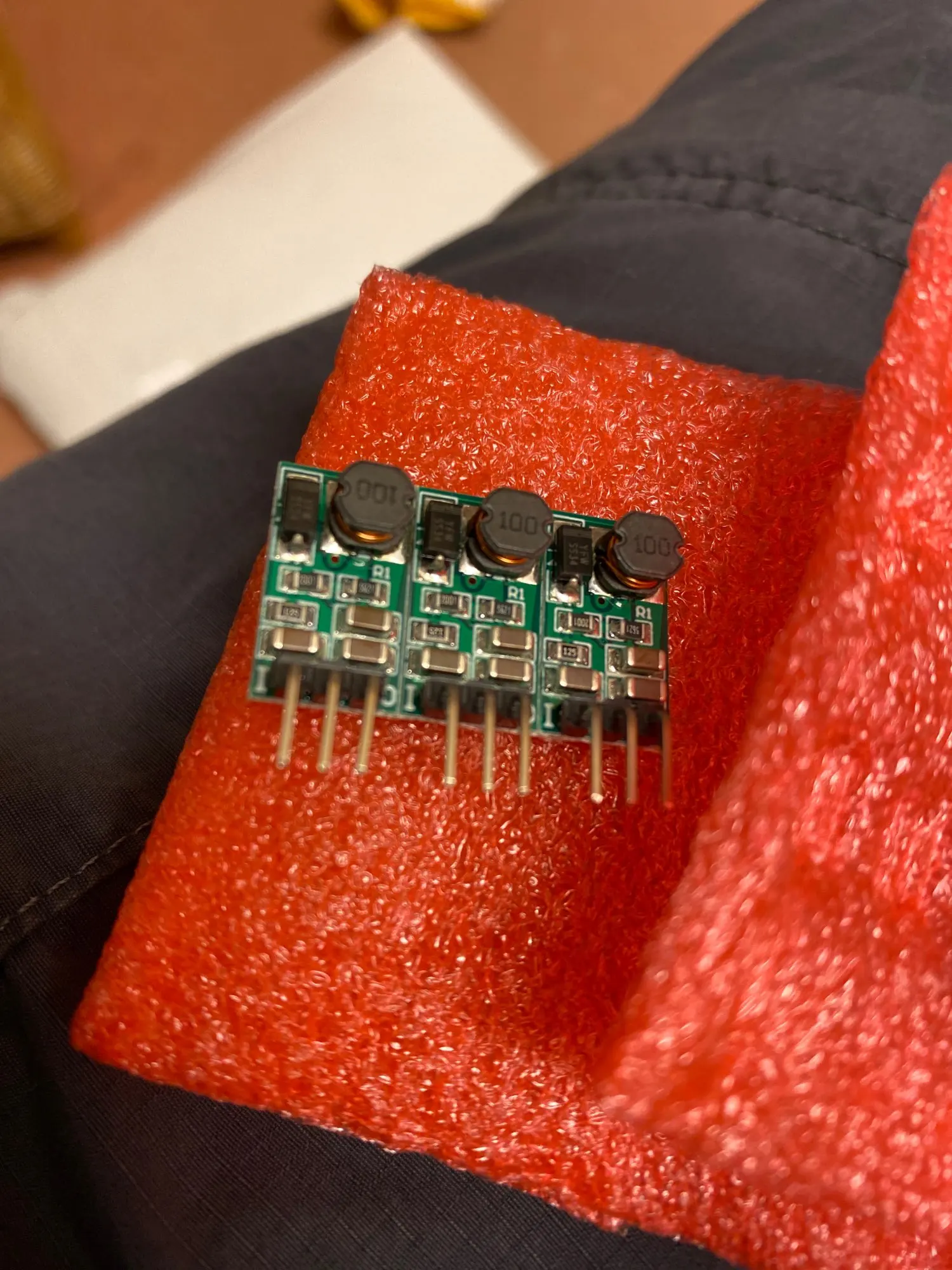 пришло быстро. что за микросхема не понятно. схема классическая step-dw. диод ss34. маленькие, 35 вольт держат. пульсации 10мВ. по току слабенькие. но если нужно понижать с 32-36 вольт до 3-5в, то это самые мелкие dc-dc, и конечно они эффективнее ldo.